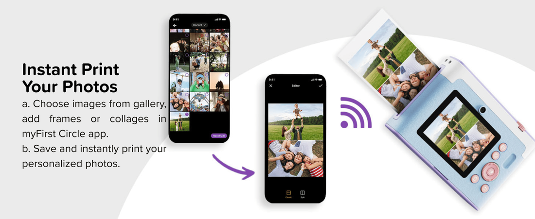 - Dual-Function Fun (Kid's Camera + Parent's Printer): Featuring built-in Wi-Fi, the Insta Lux easily connects to your smartphone via the myFirst Circle app. Now, you can print beloved pictures directly from your phone's gallery, making it effortless to showcase all your favorite family memories.