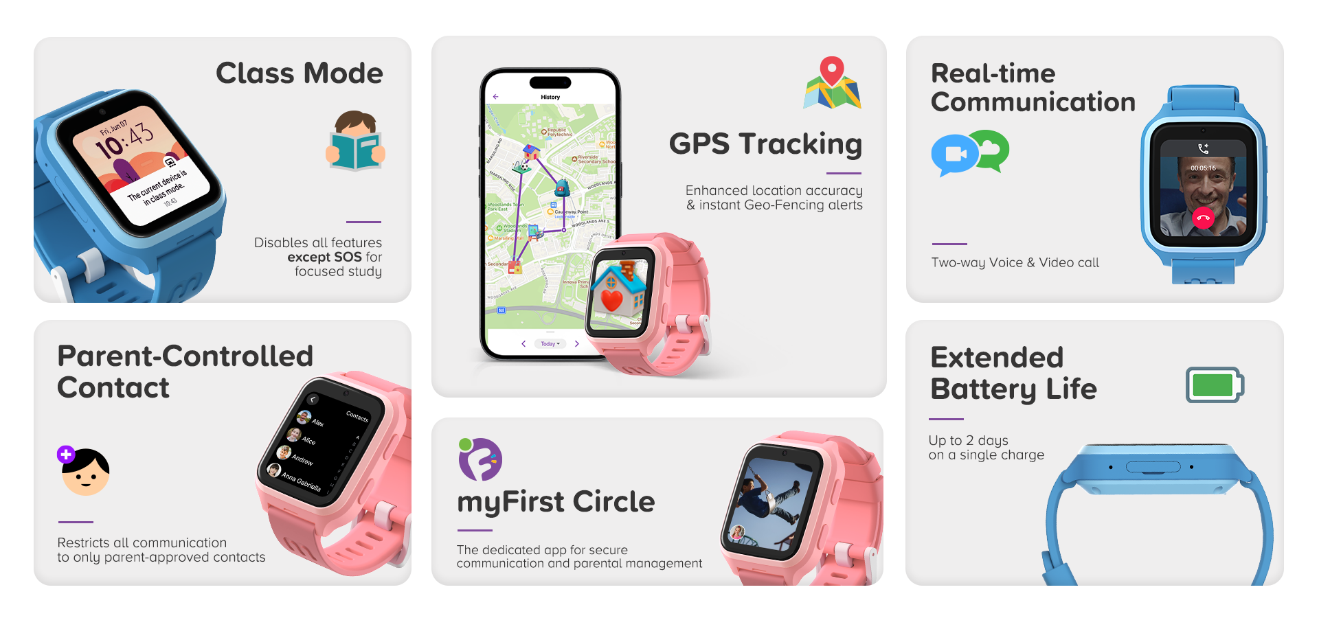 Equipped with a 730mAh battery, the watch provides reliable, all-day usage without constant recharging, ensuring your child stays connected when it matters most.