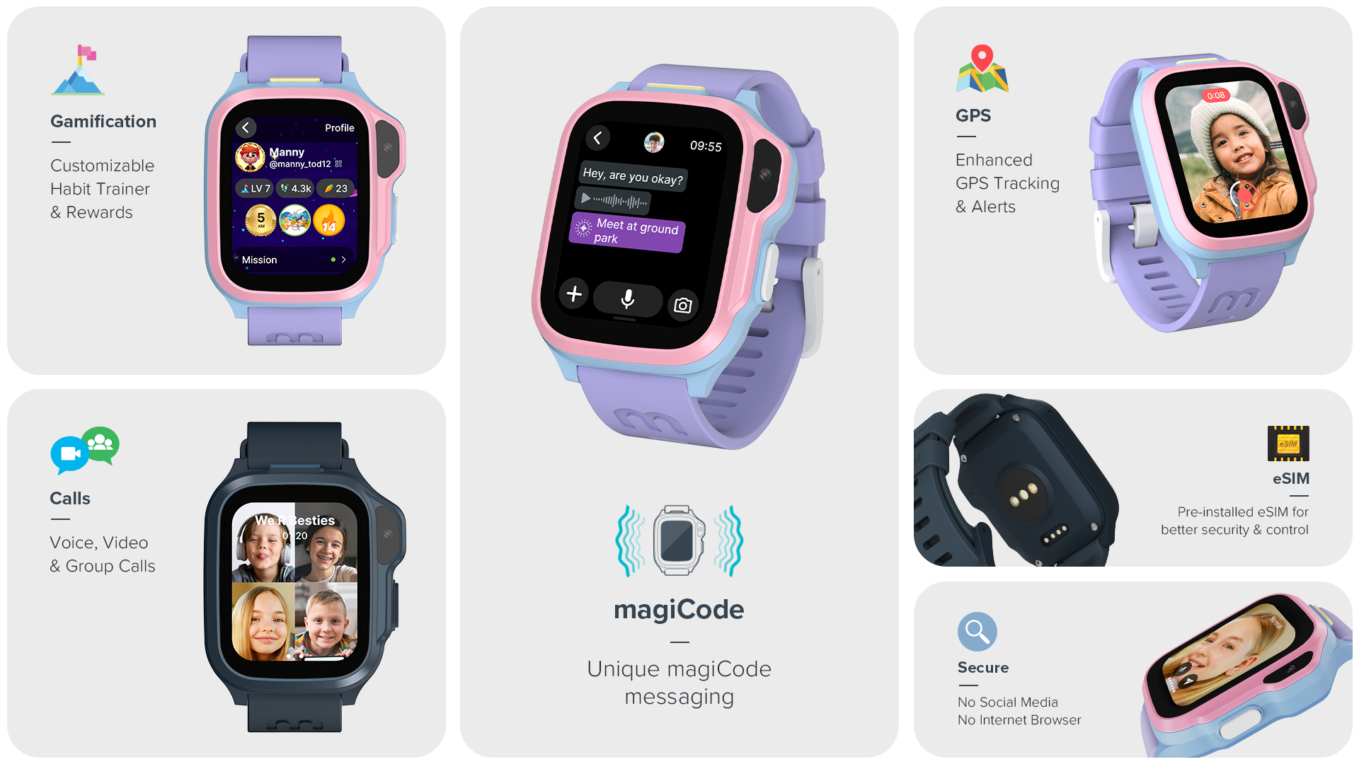 Although the myFirst Fone S4 utilizes eSIM technology, this watch works best with myFirst eSIM for optimal performance and full feature compatibility. You can conveniently manage your child's connectivity and plan through the myFirst Circle app.