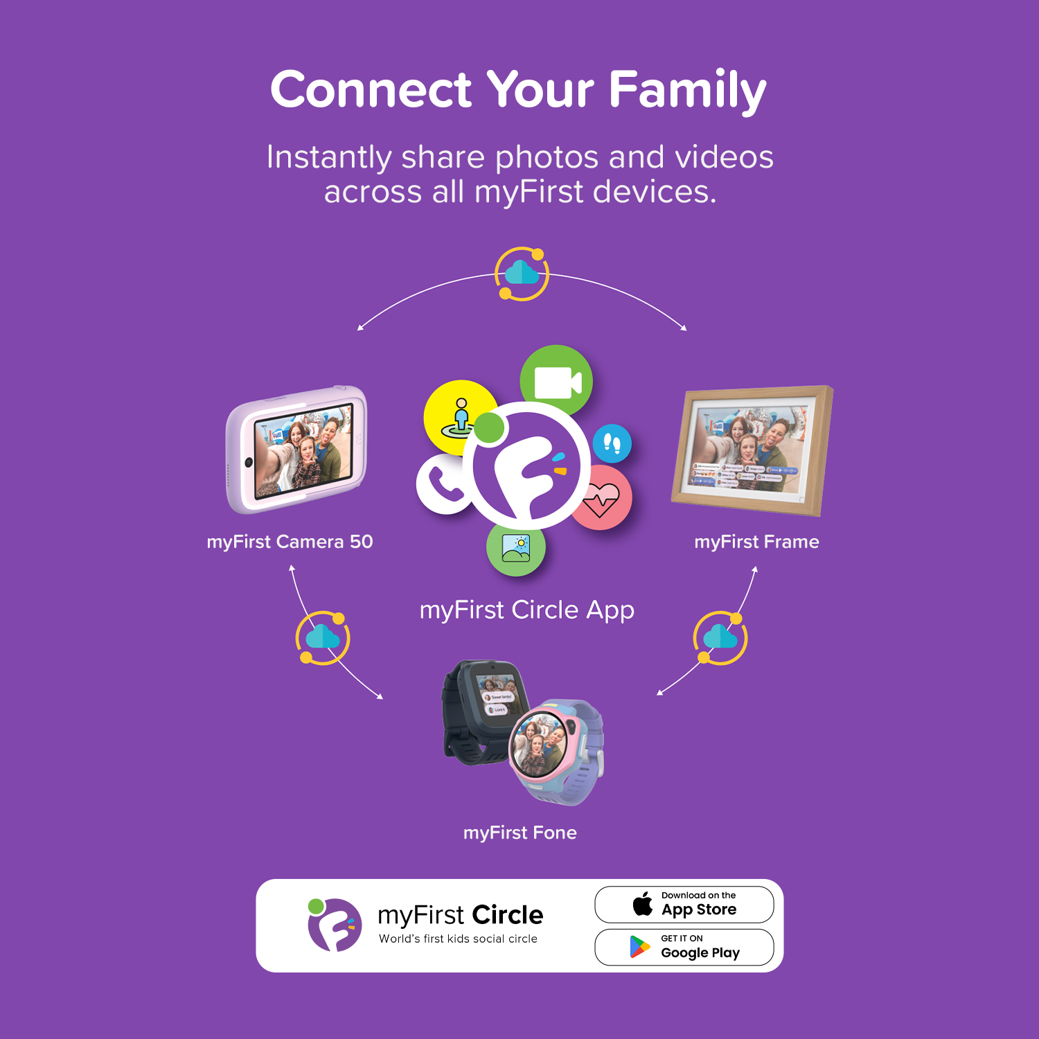 - Instant Sharing: Share photos, voice notes, and videos with loved ones across myFirst devices.