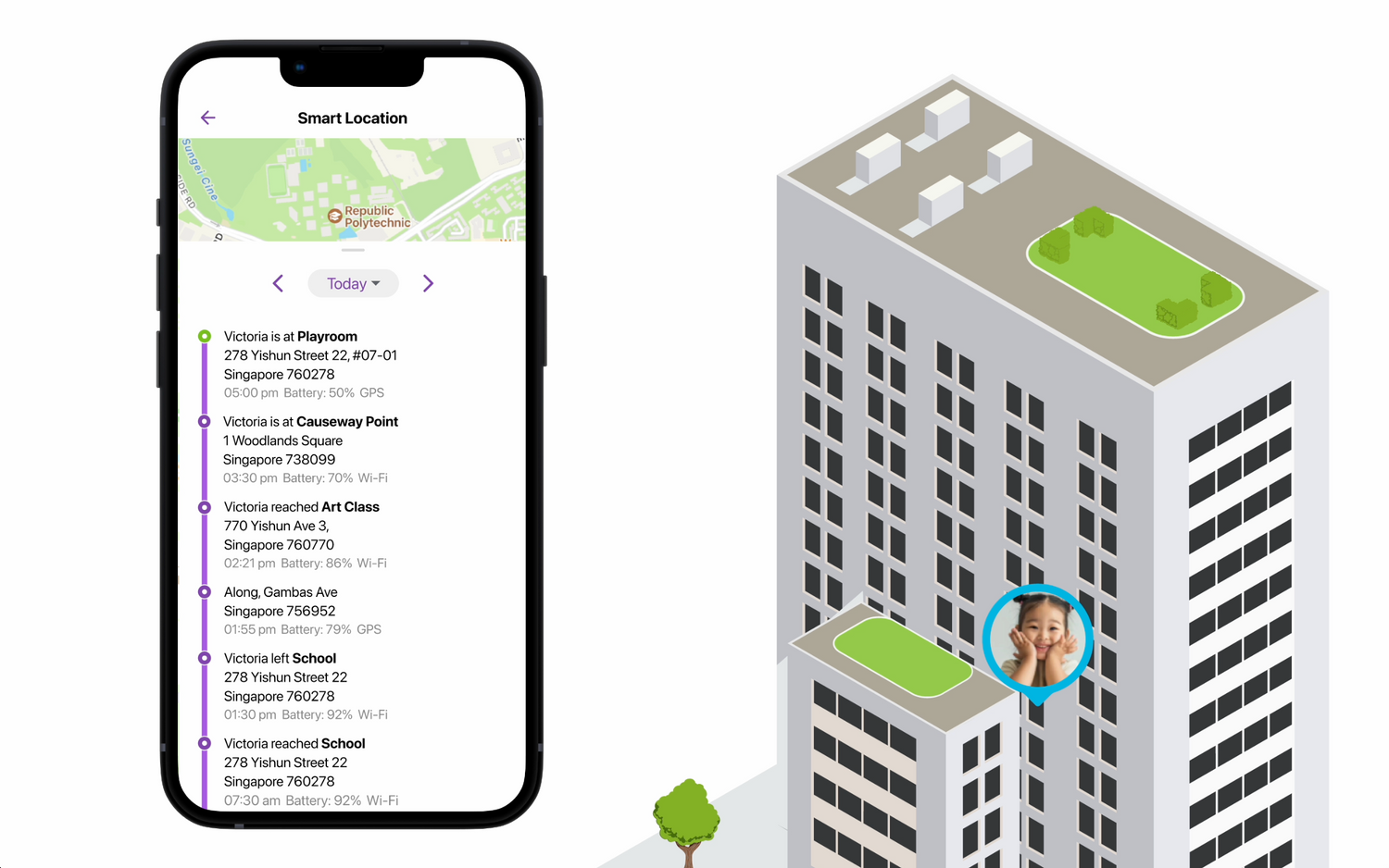 Monitor and pinpoint your child's location effortlessly, ensuring their safety during daily life or travel.