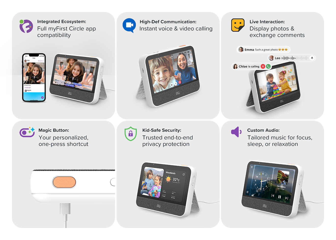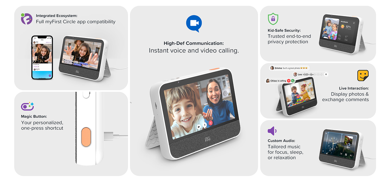 The myFirst Frame Clario is built for family safety within the private myFirst Circle network. Unlike public social media, your photos and video calls stay within a secure, closed ecosystem. With total parental control via our app, you decide who connects—keeping your family’s digital world safe, private, and protected.