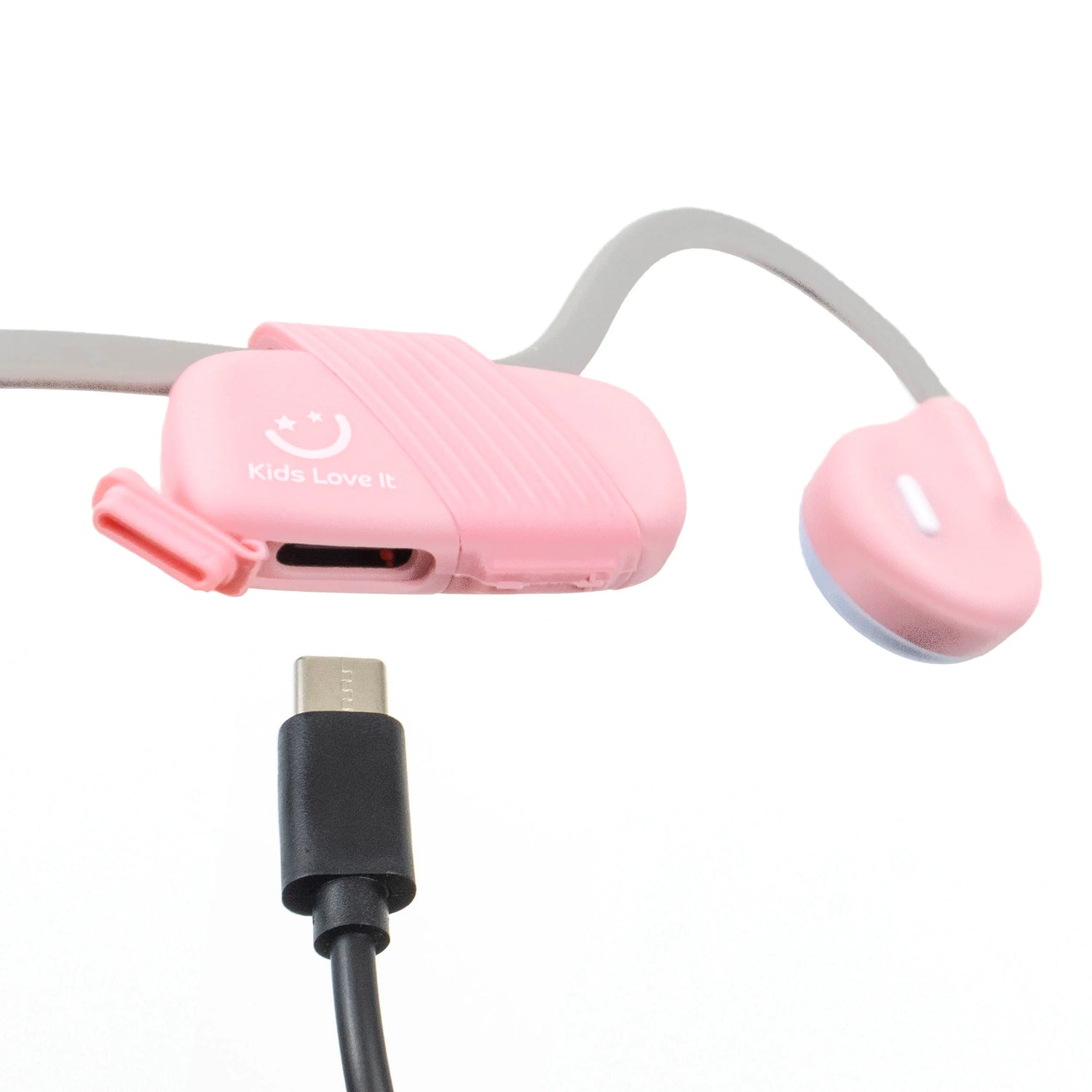 The open-ear design, using bone conduction technology, keeps ears open to surrounding sounds, providing a secure listening experience for kids.